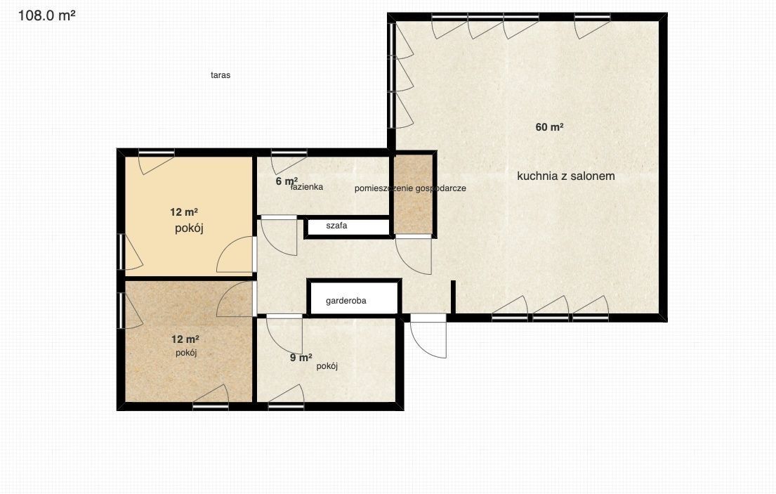 Powierzchnia domu to 108 m², co zapewnia przestrzeń dla całej rodziny. Rozkład pomieszczeń został zaprojektowany tak, by maksymalnie wykorzystywać dostępne metraże, gwarantując komfort i funkcjonalność.