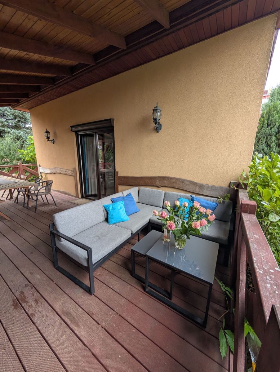 - Duży taras: Idealne miejsce na poranną kawę, wieczorne spotkania z rodziną i przyjaciółmi, ciesząc się świeżym powietrzem i widokiem na okolicę
