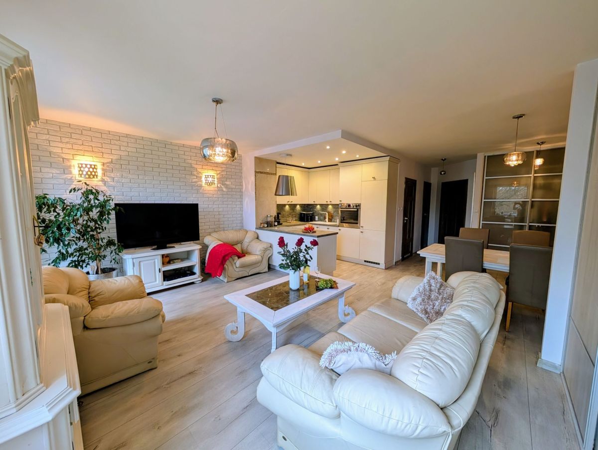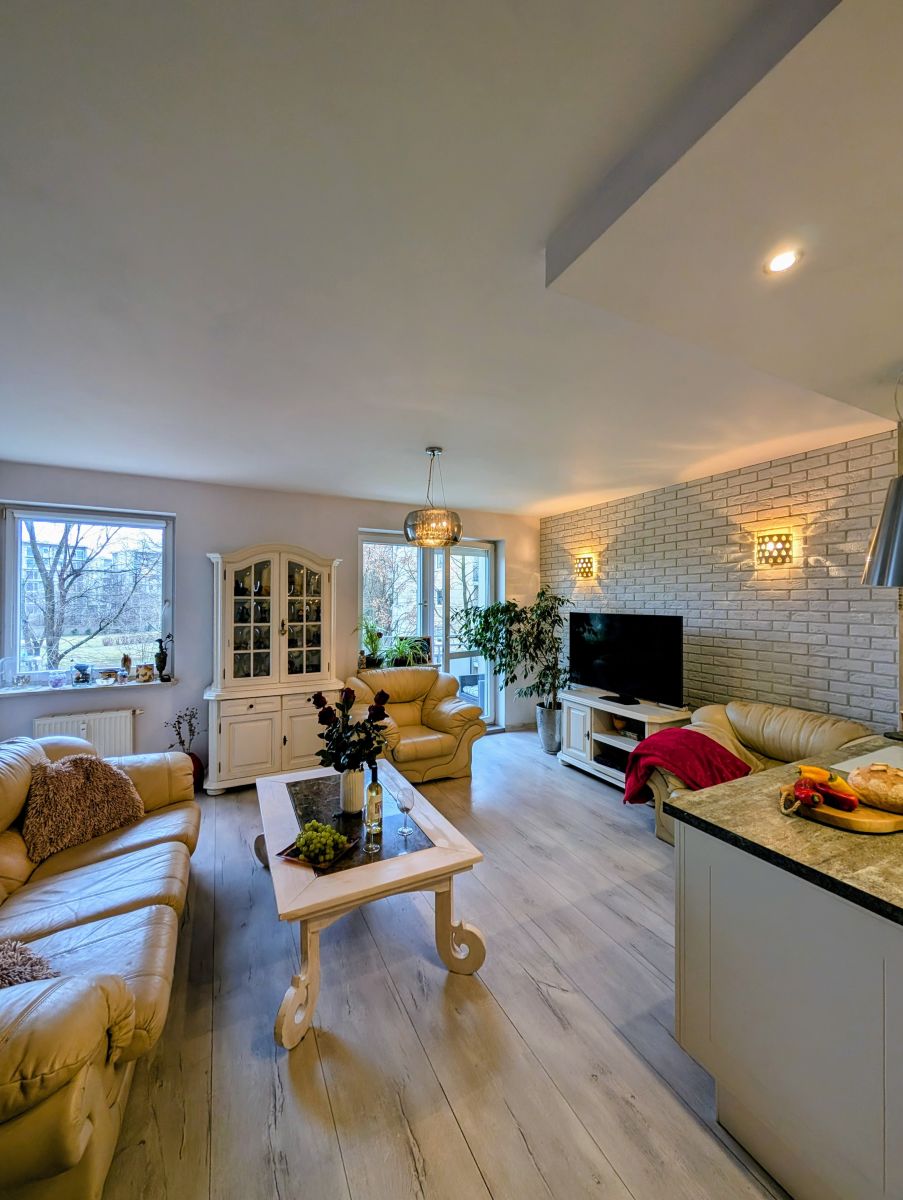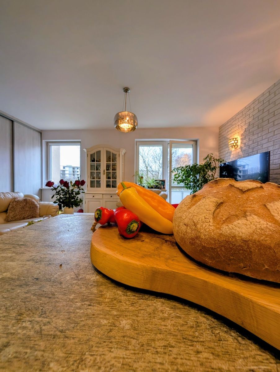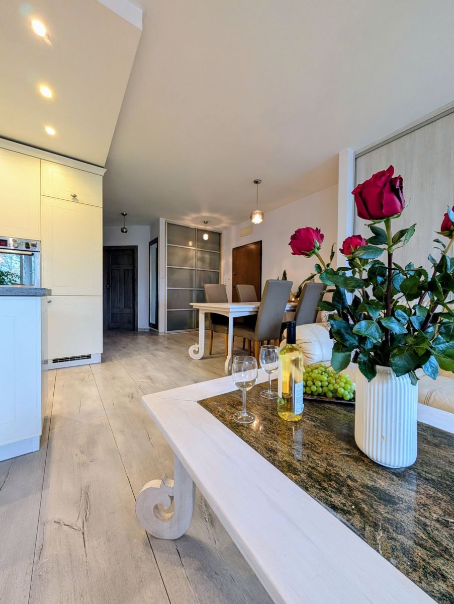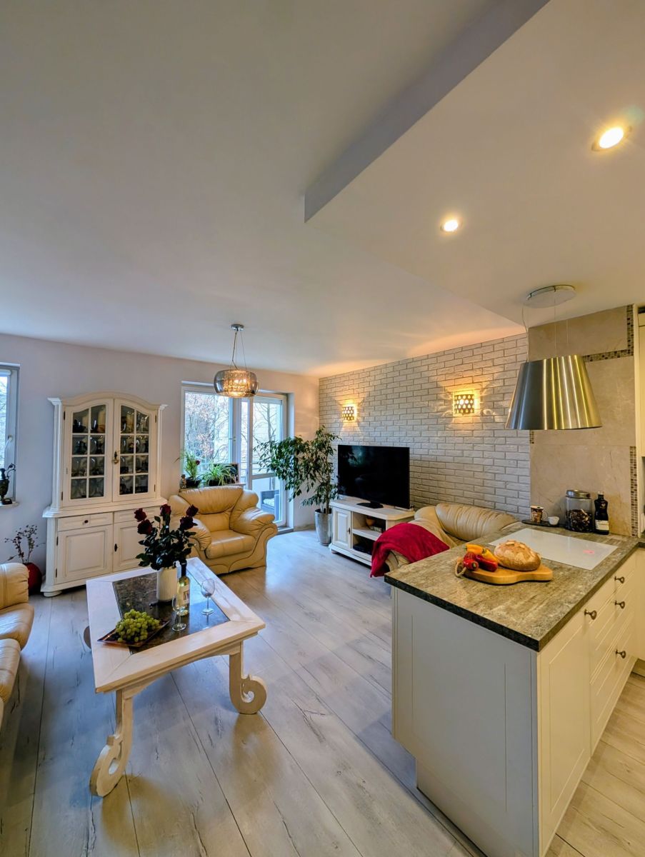 - Salon z aneksem kuchennym to serce domu - przestronny, jasny i zaprojektowany tak, by codzienność była przyjemnością. Duże okna wpuszczają mnóstwo naturalnego światła, a wyjście na balkon sprawia, że poranna kawa smakuje tu wyjątkowo.