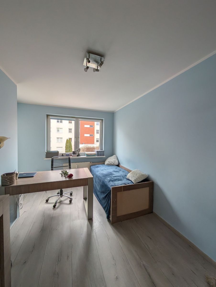 - Trzeci pokój to przestrzeń, którą można dopasować do siebie - biuro do pracy zdalnej, pokój dziecka, garderoba albo pokój gościnny. Z tego pokoju także prowadzi wyjście na balkon, co dodaje mu wyjątkowego uroku i funkcjonalności.